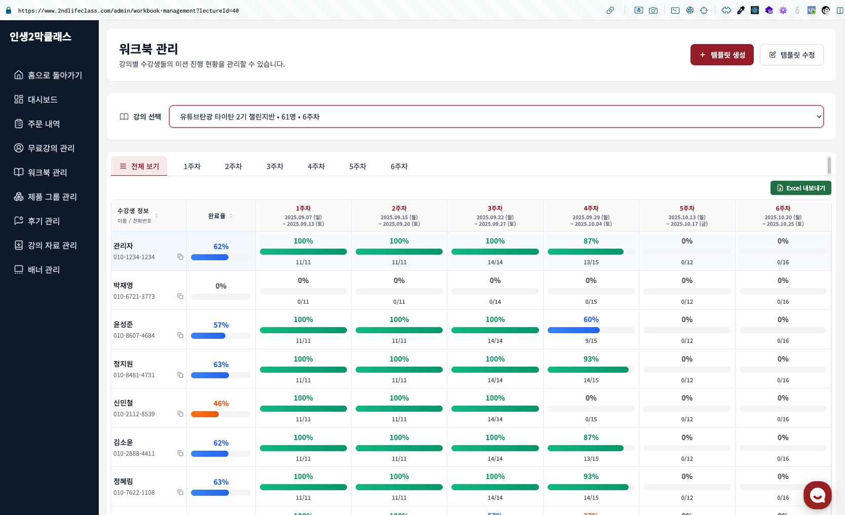 수강생별 미션 제출 현황을 한눈에 파악하고, 피드백을 통해 학습 동기를 부여합니다.